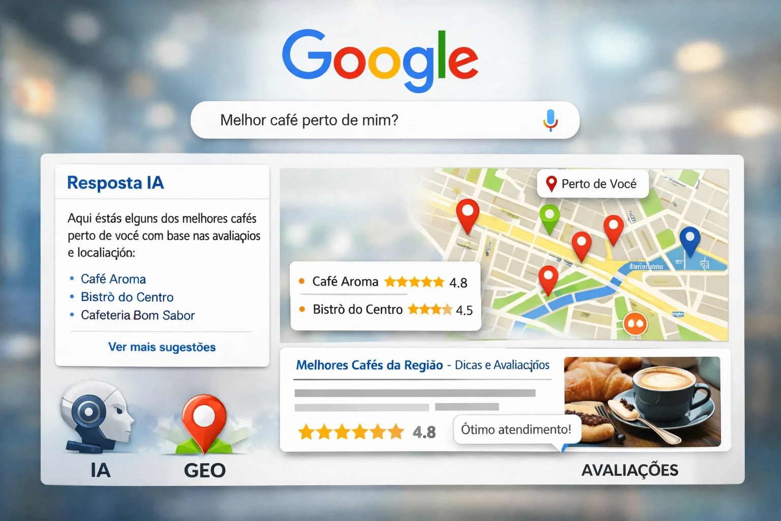 AEO e GEO ajudam seu negócio a ser entendido quando alguém pesquisa no Google ou pergunta para uma inteligência artificial antes de comprar.